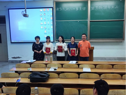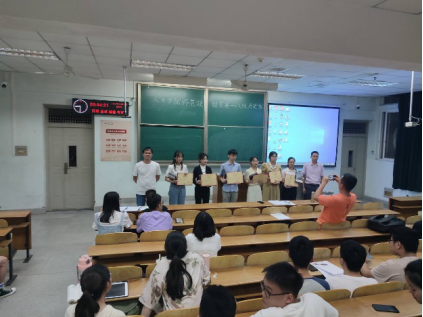 接着,根据各位评委老师打分结果综合,由主持人熊伟恒同学宣布各位选手的得分情况。第一名为解铭洁同学,总得分为92.2、谢莹莹同学以91.4分取得第二名的好成绩、涂新星同学以88.8分取得第三名的成绩,并由陈力教授、赵标老师为张兰、黄欣妮、李琛玮、唐艺荣、李苗、喻超颖等同学颁奖,由李义芳、卢川老师为解铭洁同学、谢莹莹同学、涂新星同学颁奖。