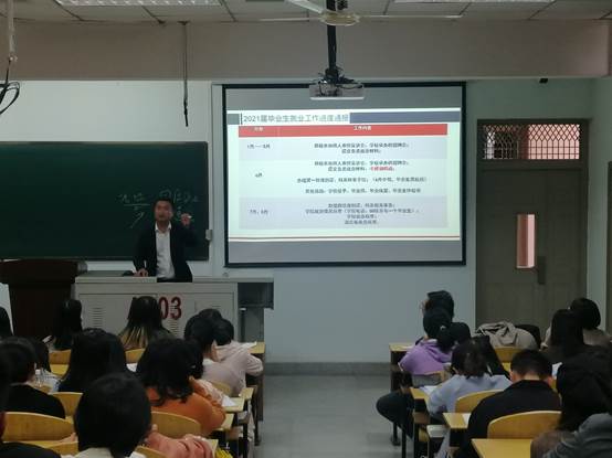 何宁老师围绕毕业生就业的相关问题进行答疑,详细地向同学们介绍了毕业生所需的就业材料的准备过程,对于材料的清点和填写、毕业生就业工作进度流程等学生关心的问题进行了逐一阐释。何宁老师还提醒同学们要把握就业时机,及时关注就业信息动态,利用多种渠道获得招聘信息,关注6776永利集团就业指导中心官网和微信公众号、关注学院QQ群动态和参加学校师范板块招聘会。