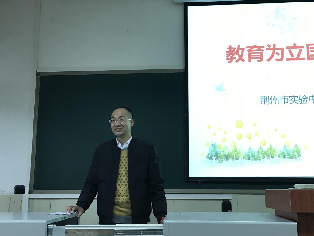 (通讯员 靳婷婷)2018年11月14日下午,16级汉语言文学专业师范教育见习之师范讲座在一教507教室顺利举行。本次讲座由荆州实验中学黄祥斌老师主讲,出席讲座的有文学院中文系系主任李征宇老师、肖祥老师以及16级全体汉语言文学师范生。