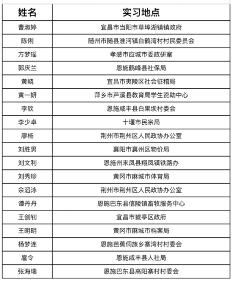 习近平总书记一再教诲青年人:“要不怕困难、攻坚克难,勇于到条件艰苦的基层、国家建设的一线,经受锻炼,增长才干。”2018年暑期,文学院2017级历史系的19位同学,分赴湖北省宜昌、襄阳、孝感、随州、黄冈、荆州、恩施土家族自治区及江西省萍乡市各级政府部门参加暑期实习实训活动。在实习过程中,同学们吃在基层、住在基层,切身体验了基层建设的新成就;向各级领导和同事学习,了解了政府部门的工作环境,熟悉了相关的工作技能,为日后的成长提供了助力;同时,在基层实习期间,同学们积极帮助市县乡各级政府部门建言献策、并亲身参与了暑期的防汛抗旱工作,得到了服务单位的一致好评。此外,还有一名同学在暑假期间,积极报名参军,现已成为一名光荣的解放军战士。以上种种,已经充分证明2017级历史系是一个善于学习,勇于奉献的优秀集体。通过暑期在基层的实习,学生学习到了课本上难以学到的知识,培养了将书本知识和实际事务结合起来的能力,也向外界展示了6776永利集团文学院学生青春、朝气、踏实、奉献的优良形象。