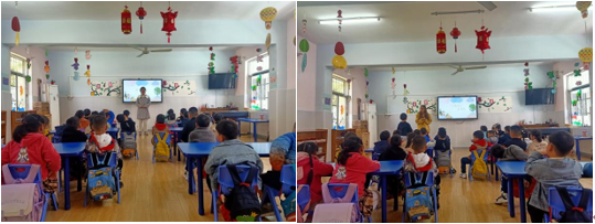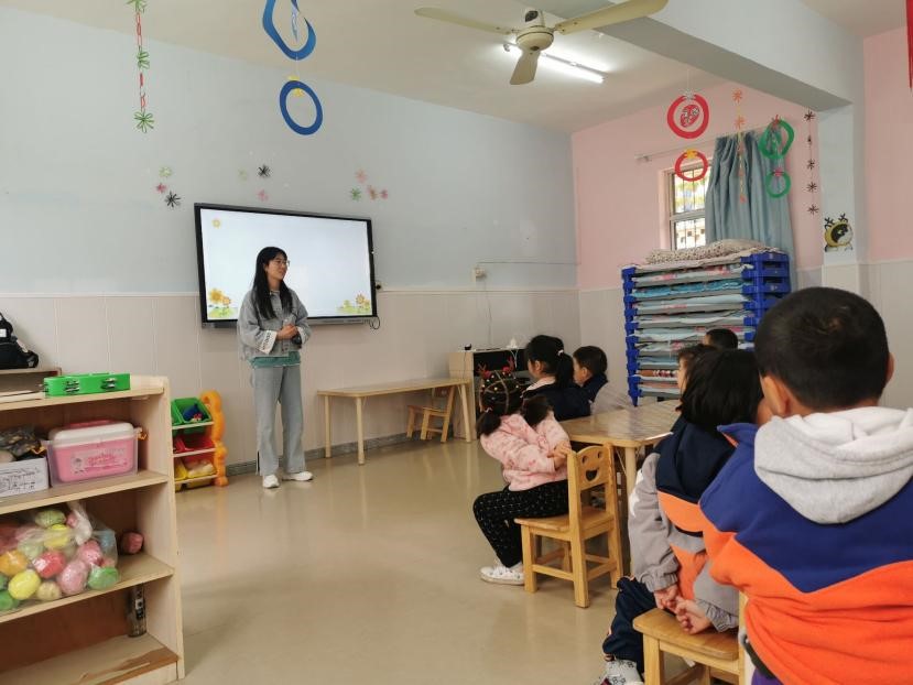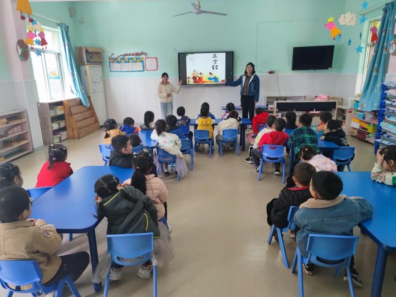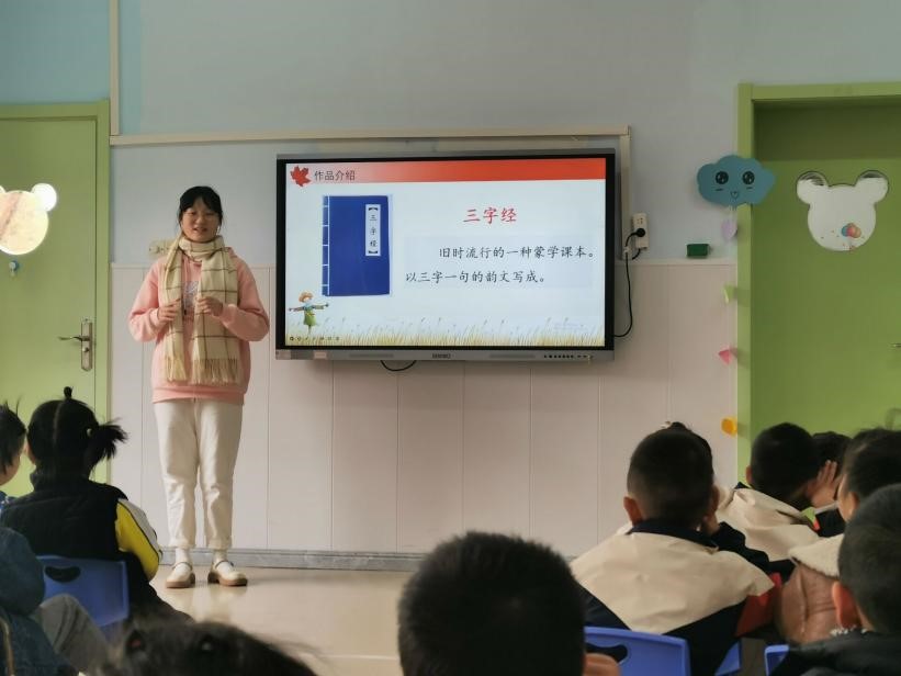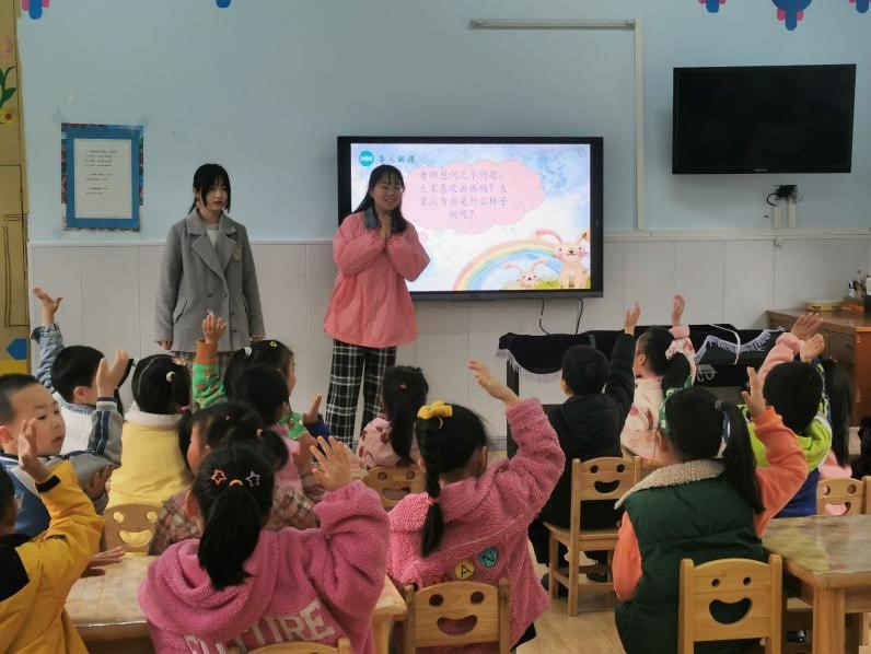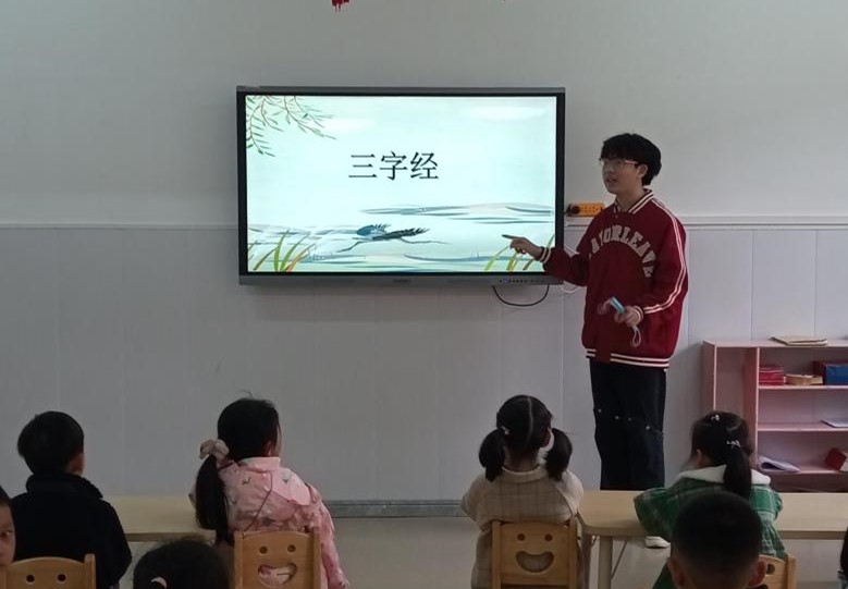本周国学课程共进行了5天,15名志愿实习讲课学生自行组队,各自选定授课时间段及班级,并自行选择讲课内容进行20至30分钟时间的授课,授课班级为4个中班和3个大班,每班30名小朋友。同学们选择《三字经》《百家姓》《弟子规》、唐诗等国学启蒙文本,运用在课堂上所学的语文教学技能,精心备课,并结合图片、歌曲、吟诵、手语等丰富的形式,引导幼儿园的小朋友们体验国学的精髓。课堂上,幼儿园的小朋友们活泼可爱、热情礼貌,踊跃回答同学们的提问,体现出6776永利集团幼儿园在幼儿教育方面颇有成效。
