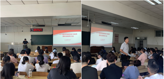 胡世先老师对实习期间学生在管理方面的工作予以介绍,并就安全管理及疫情防控等方面做了详细说明及要求。他要求每一位同学都能在实习期间打下良好基础,提升专业素养,同时严格遵守实习学校的相关制度要求。
