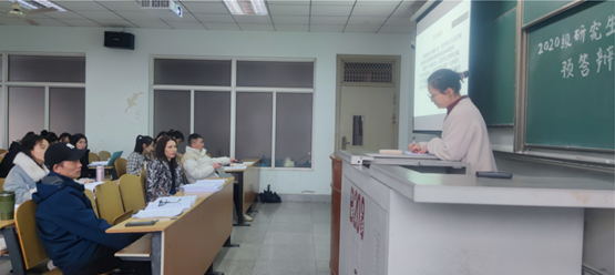 10位参加预答辩的同学依次陈述了论文的选题意义、研究方法、研究内容和创新之处,老师们针对各位学生的论文进行了现场提问,并对论文中出现的问题提出修改意见,为接下来同学们能顺利通过盲审做好准备。