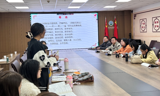 最后,刘校长秉承着多年的教学经验,指出我们需要遵循“形—术—势—道”的专业规律。在未来的教职生涯中,需泥步修行,行稳致远,永不言弃,为党育人,为国育人,久久为功,做一个不会后悔的语文人。