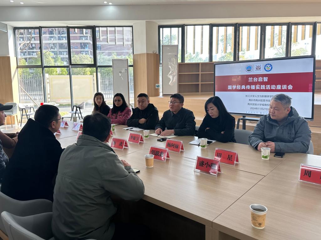 在座谈会开始之前,与会人员参观了城南校区教学场地和设施,并就共同开展“兰台启智”国学经典传播活动、以及建立荆州区图书馆城南校区分馆等事宜进行了沟通和交流。