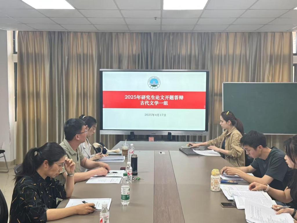 (通讯员 陈清怡)为严格把控研究生学位论文质量,规范学位论文撰写工作,4月17日下午2时,古代文学教研室举行了2023级硕士研究生论文开题答辩会。本次答辩共分两组,古代文学一组答辩委员会由李征宇、杨伟业和吴桂美三位老师组成,古代文学二组答辩委员会由杨名、袁咏心和章芳三位老师组成。16名硕士研究生完成了答辩,2024 级硕士研究生观摩学习。