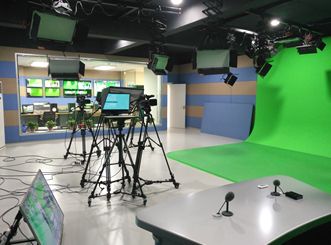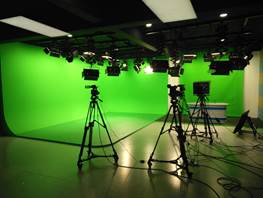 虚拟演播实验室能够满足电视摄像、布光、导播、绿幕抠像等要求。可以实现完全的多机位虚拟演播、录播功能,灯光系统完全按照虚拟演播室照明要求,保证主体人物绿幕抠图质量,主要培养学生电视节目的制作能力。实验室配备有绿箱、高清摄像机、全场景真三维虚拟演播室系统、视频特技切换台、信号监视系统、调音台及音响设备、提词器、导播通话系统、无线通话系统、调光台及灯光系统、高清非线性编辑工作站等。