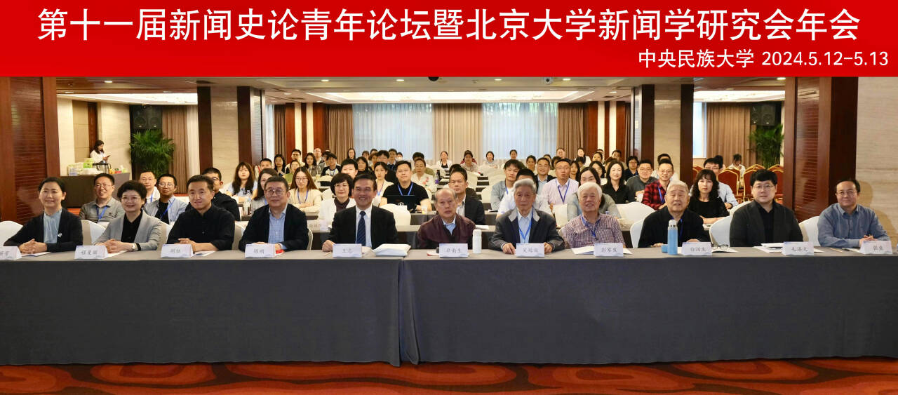 2024年5月12日至13日,第十一届新闻史论青年论坛暨北京大学新闻学研究会年会在北京召开。此次会议由北京大学新闻学研究会和中央民族大学共同主办,中央民族大学新闻与传播学院承办,北京大学新闻学研究会新闻史论师资特训班同窗会、中央民族大学中华民族文化传播研究中心协办。