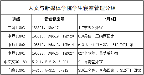7月5日,我院组织学生干部对18、19级的宿舍进行每日寝室安全检查,现将查寝结果公布如下: