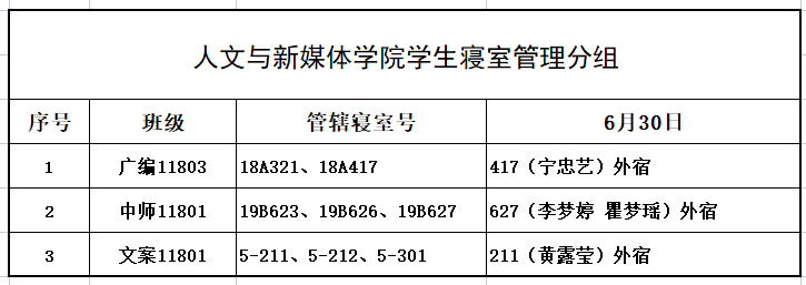 6月30日,我院组织学生干部对18、19级的宿舍进行每日寝室安全检查,现将查寝结果公布如下: