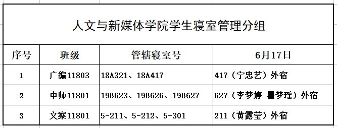 6月17日,我院组织学生干部对18、19级的宿舍进行每日寝室安全检查,现将查寝结果公布如下: