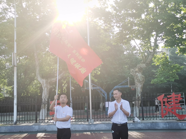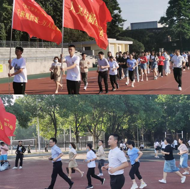 随后,何宁老师从马克思主义学院李敏老师手中接过“千班唱红歌,万人健康跑”旗帜。同学们整齐列队,围绕操场跑步两圈。
