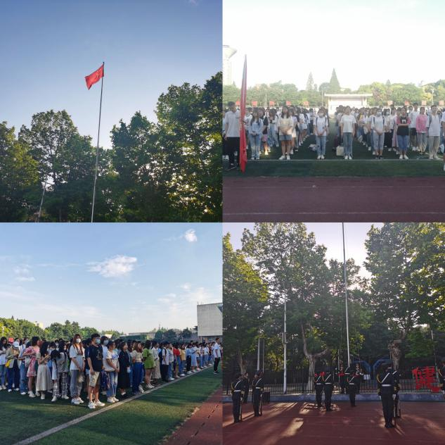 7点整,在庄严的国歌声中,五星红旗冉冉升起,在场师生用庄重的注目礼向国旗致敬。
