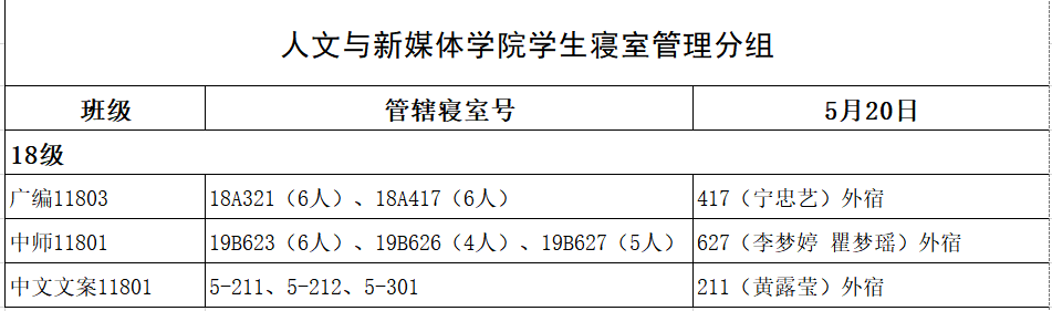 5月20日,我院组织学生干部对18、19级的宿舍进行每日寝室安全检查,现将查寝结果公布如下: