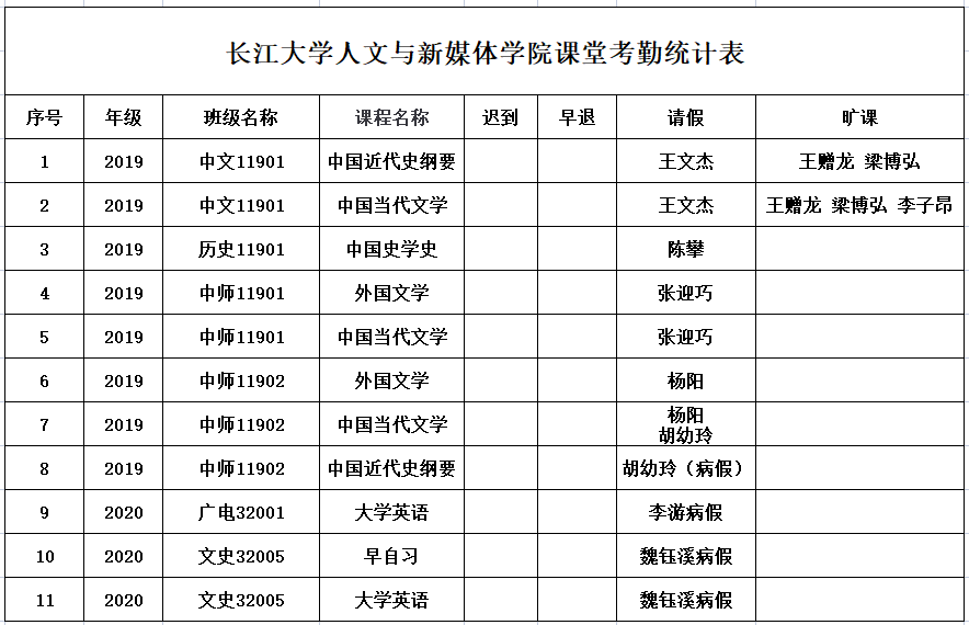 5月14日,我院组织学生干部对18、19、20级30个班的17门课程进行45次课堂考勤,100%到课率34次,现将考勤结果公布如下:
