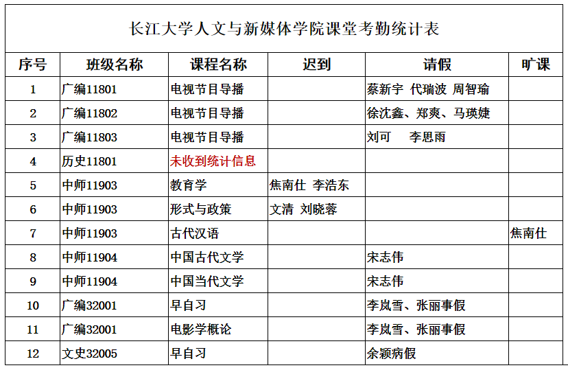 4月8日,我院组织学生干部对18、19、20级30个班的19门课程进行了50次课堂考勤,100%到课率35次,现将考勤结果公布如下: