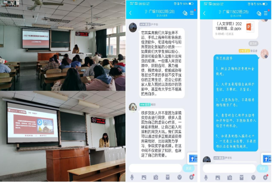 各班对“非法校园贷”的基本内容、基础金融知识以及当前贷款公司常见诱骗形式、如何防范非法校园贷等内容进行宣传推广,揭示非法校园网贷的典型骗局。提醒学生培养积极健康的价值观,树立正确的消费习惯。主题班会后,各班利用班级QQ群交流学习感悟,并就如何有效防范“非法校园贷”展开了热烈讨论,学生受教育效果良好。