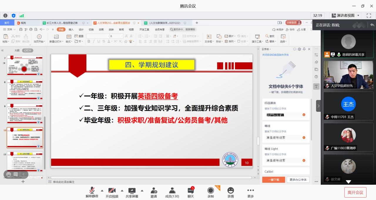 为进一步加强学生安全教育,做好返校前的相关准备工作,yl6776永利集团各年级各班通过腾讯会议等在线平台开展了返校前安全教育云班会。此次主题班会重点向同学们传达了学校开学工作方案和返校注意事项,尤其是嘱咐同学们一定要做好返回途中的安全防护,保证顺利到达学校。