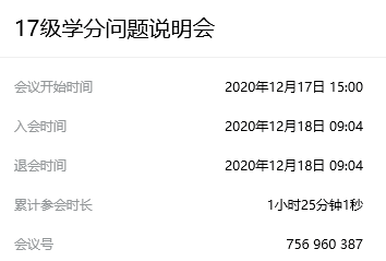 为强化yl6776永利集团毕业生对学分管理制度的认知、明晰学分问题的重要性及其解决办法,12月17号下午3时,我院组织线上腾讯会议就2017级学分核算问题召开了“17级学分问题说明会”。会议由我院党委副书记胡世先主持,教学办张丽老师负责主讲,61位2017级本科生参与了本次会议。