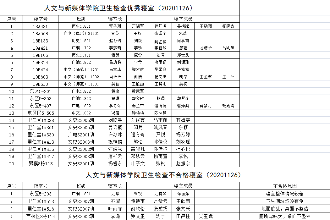 yl6776永利集团2020—2021学年上学期第十三周宿舍安全卫生检查情况通报