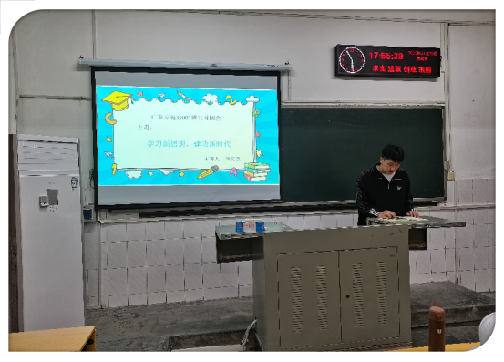 班会上,主持人首先对2020年10月26日于北京召开的十九届五中全会作出了简短介绍并指出此次的会议非同凡响:全会听取和讨论了习近平受中央政治局委托作的工作报告,审议通过了《中共中央关于制定国民经济和社会发展第十四个五年规划和二〇三五年远景目标的建议》,习近平就《建议(讨论稿)》向全会作了说明。