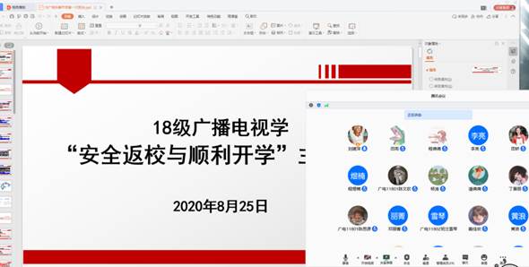 本次系列班会采用腾讯会议APP召开。主题班会开始前,各班班主任对本班学生进行点名和签到,确保所有学生到会。主题班会从返校安排、返校前的准备、报到流程、校园管控三阶段和学费缴纳五个方面展开,各年级辅导员和班主任为大家重点讲解了分批返校和校园管控三阶段的具体安排,强调了返校前必须的14天连续健康打和按流程返校,并将“申请—审批”制度的具体做法向学生进行了说明。