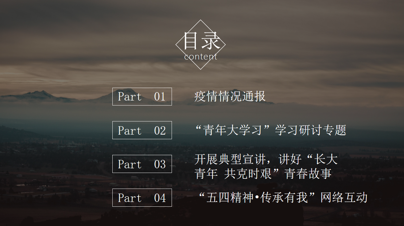 会议深入学习了以习近平同志为核心的党中央对疫情防控工作的坚定信心、坚强领导和英明决策,宣讲长大典型青年故事,并且对五四精神的传承进行了网上互动。
