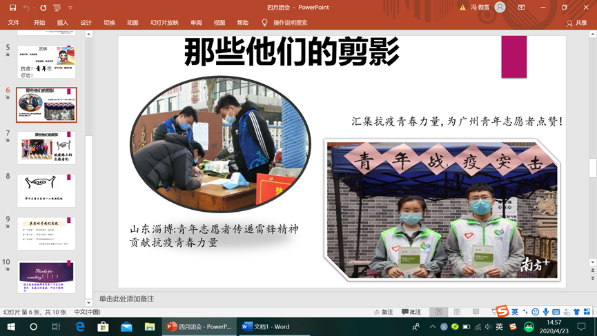 本次线上主题班团会活动,内容丰富,形式多样,效果显著。同学们不仅学习了习近平总书记在疫情期间的讲话精神,体悟了冯征校长“坚决打赢疫情防控阻击战,统筹推进学校事业发展”的工作部署,更对疫情期间青年的责任与担当进行了大讨论。通过此次线上团会的开展,同学们对身边的抗疫英雄事例有了更深刻的了解。相信这种深层次的精神动力,会在下一阶段激励同学们愈行愈远。