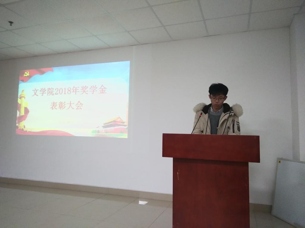 在大会上,首先由辅导员李永琪介绍了2018年度文学院奖助学金评选工作的基本情况,随后由严实老师宣读了表彰文件,依次为文学院2018年度国家奖学金、6776永利集团奖学金、德贵奖学金、橘颂奖学金获得者颁发荣誉证书。紧接着,优秀学生代表上台发言,其中国家奖学金获得者黄宪成同学在发言中对自己这一年来的学习和工作情况做了总结,并鼓励在座各位同学勤于奋斗,不忘初心。国家助学金受助代表黄海雯同学在发言中说到要常怀感恩之心,向给予自己关心和帮助的国家、学校与学院表示深切感谢。
