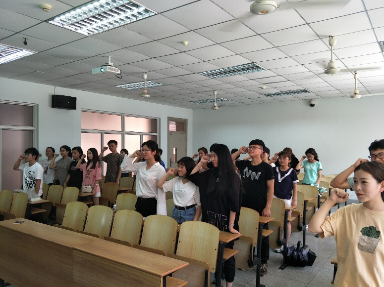在宣誓阶段,张世祯带领同学们庄严宣誓:“在即将到来的四级考试中,同学表示自愿遵守考试纪律, 严格遵守考试管理规定,不替他人考试,不请他人代考,不夹带与考试内容有关的材料,不抄袭他人答卷,不扰乱考场秩序,服从巡视和监考老师的管理。”