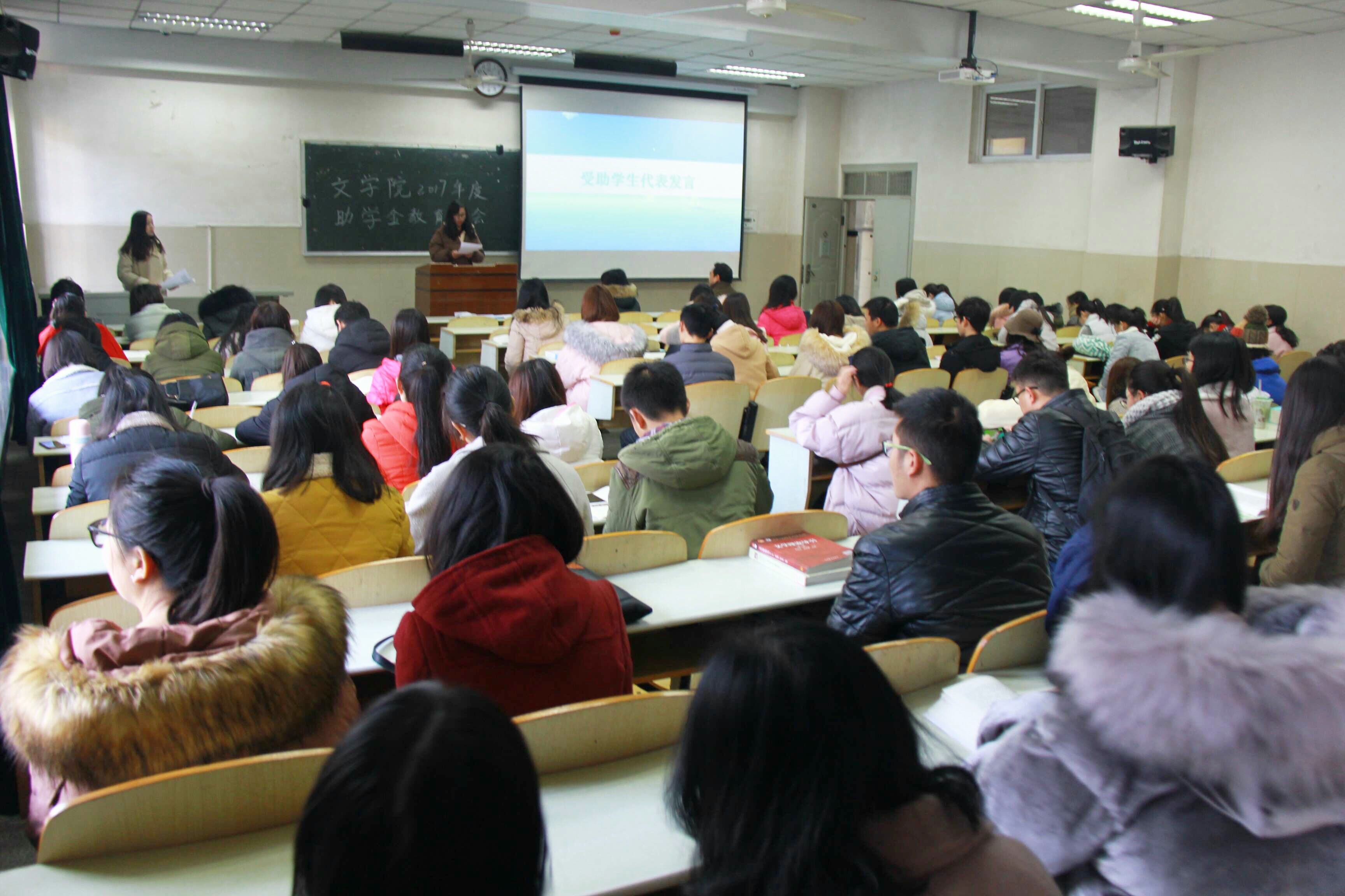 为进一步贯彻国家资助政策、促进我院资助育人工作,1月12日上午,我院分别于文科大楼705会议、东12教101教室召开文学院2017年度奖学金表彰大会和助学金教育大会,文学院党委书记杨鑫,学工办主任严实,辅导员陈娟、李楚昭、杨雪参加了大会。