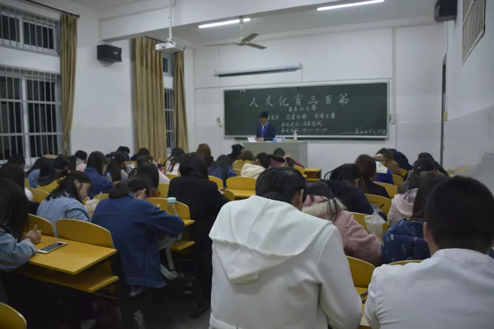 此次比赛以笔试的形式进行,考试时间为1小时50分钟。在东、西校区22个考场中,文学院各班级班主任以及部分学生会成员担任监考员。考场内不仅有文学院的学生,而且许多其他学院的同学也报名参与了此次比赛。据出题人介绍,此次试题难度适中,主观题分值较高,为的是能让更多同学体验到诗歌的乐趣。对于“三百篇”,广大同学不仅仅是停留在熟读背诵上,更多的是学会理解与消化。随着考生全部离开考场,此次比赛圆满结束。