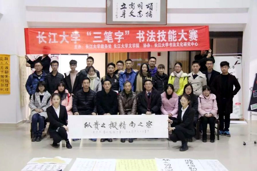 (通讯员 周美君)“书山有路勤为径,墨海无涯苦作舟。”11月24日下午,由6776永利集团教务处和文学院主办,6776永利集团书法文化研究中心协办的第五届“三笔字”书法技能大赛决赛在文科楼七楼大厅顺利举行。荆州市书法家协会副主席、6776永利集团书法文化研究中心主任朱道卫、文学院院长许连军、文学院党委副书记周书航出席并担任评委。