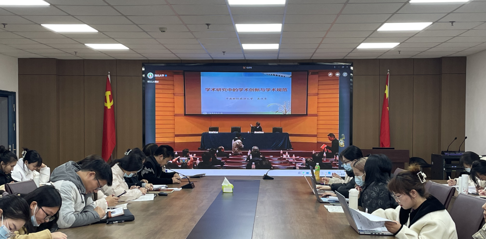 报告会上,中南财经政法大学原校长、博士生导师吴汉东作了《学术研究中的学术创新与学术规范》的演讲则围绕学风建设,科研诚信建设和学术创新三方面讲了自己的感悟与体会。    通过观看此次科学道德和学风建设宣讲教育报告会,使我院学生对于科研精神有了更深刻的了解。引导我院研究生在今后的学习研究中能不忘初心,恪守诚信这一底线,发扬创新这一方法,用行动践行 “尊道贵德,慎思笃行”的院训。