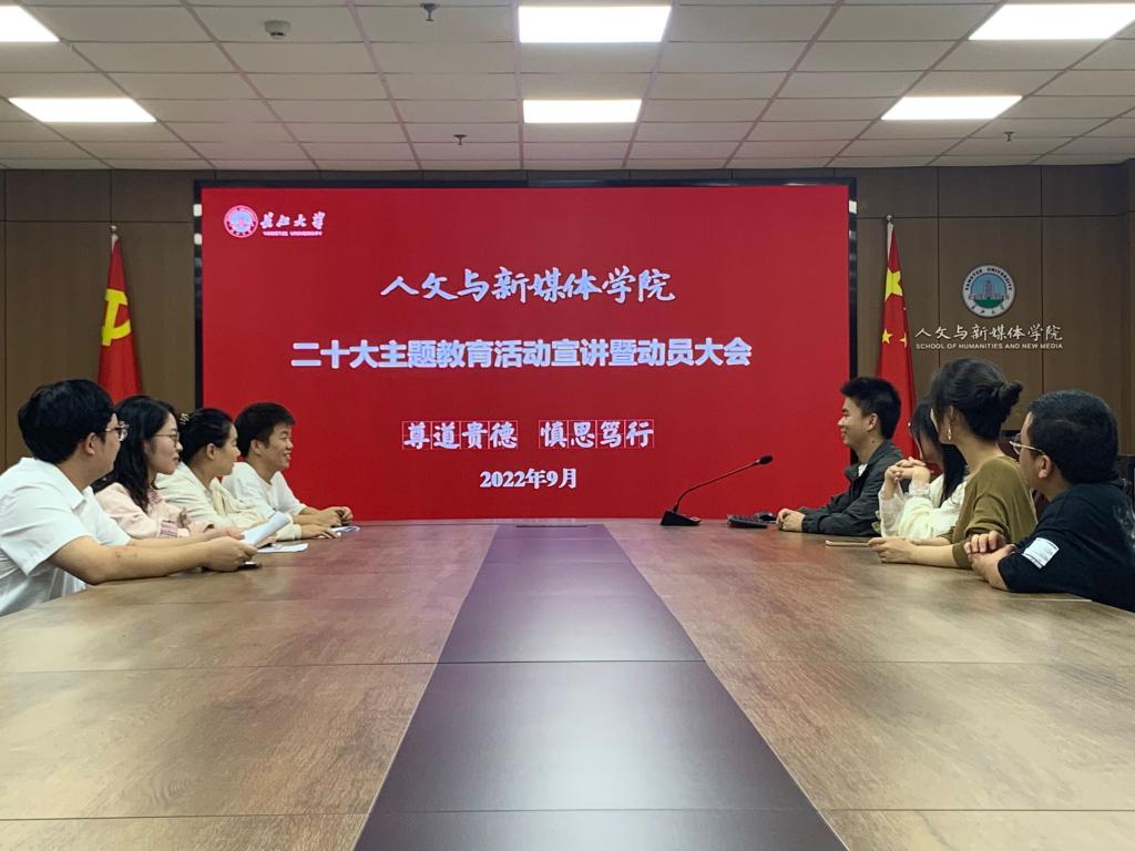 为了进一步推动“喜迎二十大 永远跟党走 奋进新征程”主题教育实践活动走深走实,团结引领广大青年坚定信念、勇担使命,争做时代新人。9月25日晚7时,yl6776永利集团在文科楼705会议室举行二十大主题教育活动宣讲暨动员大会,学院辅导员彭超、田华蓉及主要学生干部代表参加。