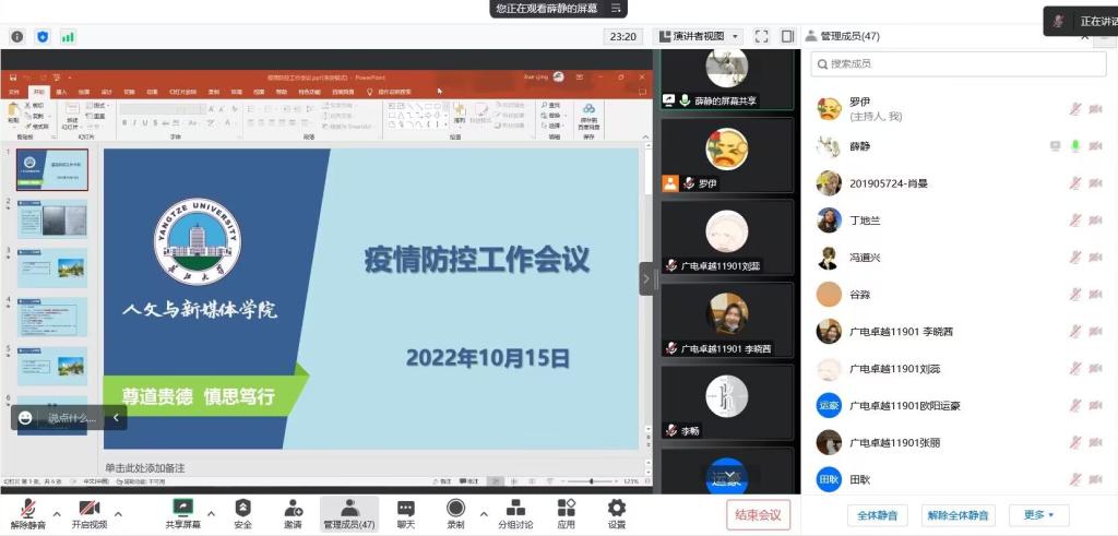 为进一步筑牢防疫安全屏障,增强学院师生防疫意识与责任, 10月15日,yl6776永利集团组织召开疫情防控工作会议,学院党委书记杨克非,全体班主任、辅导员,各班级班长、安全员参加此次会议。会议由学院党委副书记胡世先主持。