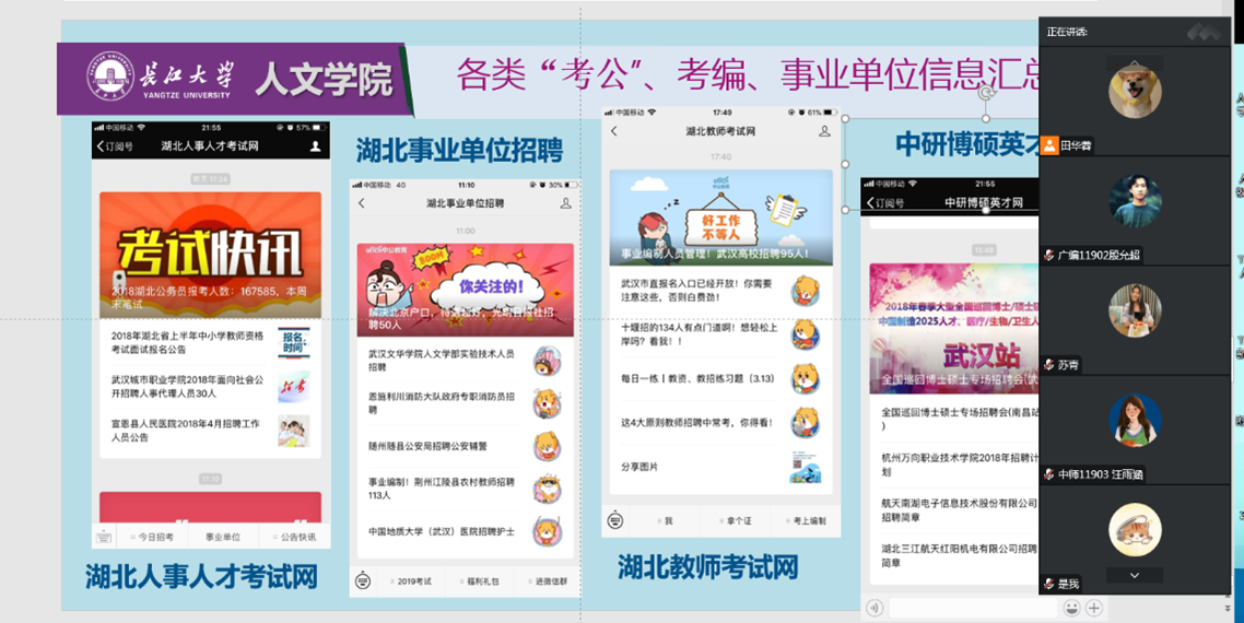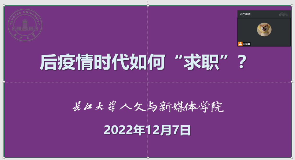 为突破疫情背景之下毕业生就业桎梏,深入推进2023届毕业生就业工作,千方百计促进毕业生更充分更高质量就业。2022年12月7日晚7:00,我院召开线上“后疫情时代如何求职”主题就业指导讲座,本次主讲人为学院就业专干田华蓉老师,2023届全体毕业生参与本次讲座。