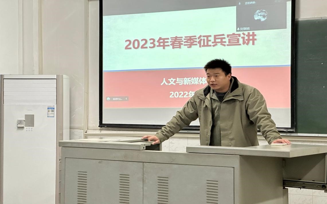 烽火照危旌,年少从军行。何惧风雨来,我辈请长缨。12月4日晚7时,yl6776永利集团在西区五教415教室顺利进行2023年春季征兵宣传活动。参会人员有22级全体新生以及学院高年级参军意愿的学生。特邀我院21级退伍士兵周杨和吴嘉怡同学分享军旅生涯和征兵政策宣讲。本活动由辅导员田华蓉、耿传令主持。