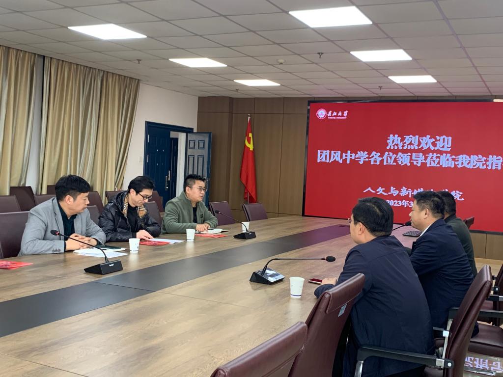 3月13日,湖北省团风中学纪委书记王利平、副校长周银平等一行人来我院调研交流。学院党委书记杨克非、副院长杨家海参加。党委副书记胡世先主持座谈会。