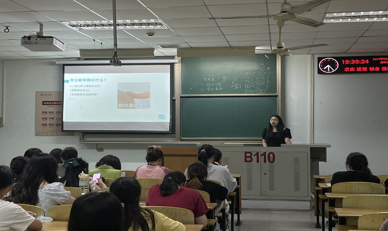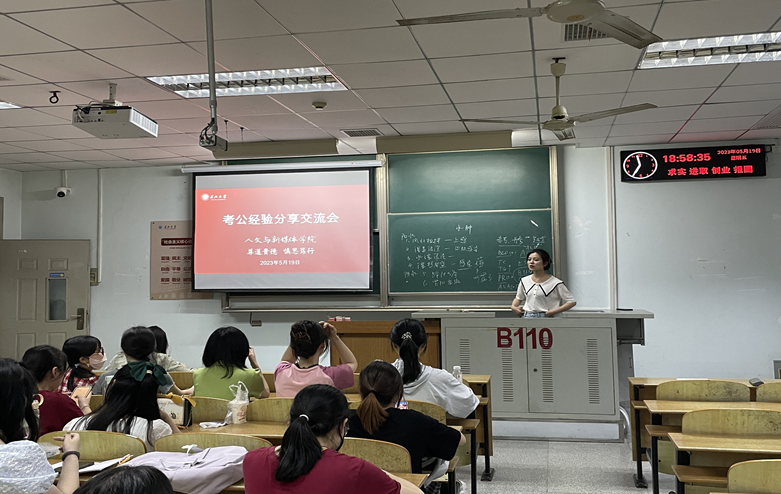 2023年5月19日晚19:00,yl6776永利集团考公经验分享交流会于13教B110教室成功召开,本次分享会由辅导员田华蓉老师主持,邀请2019级毕业生宋梦晗、张雨晴、盛苗三位同学分享自己在考公方面的经验,学院21级、22级部分意向考公的同学参会。