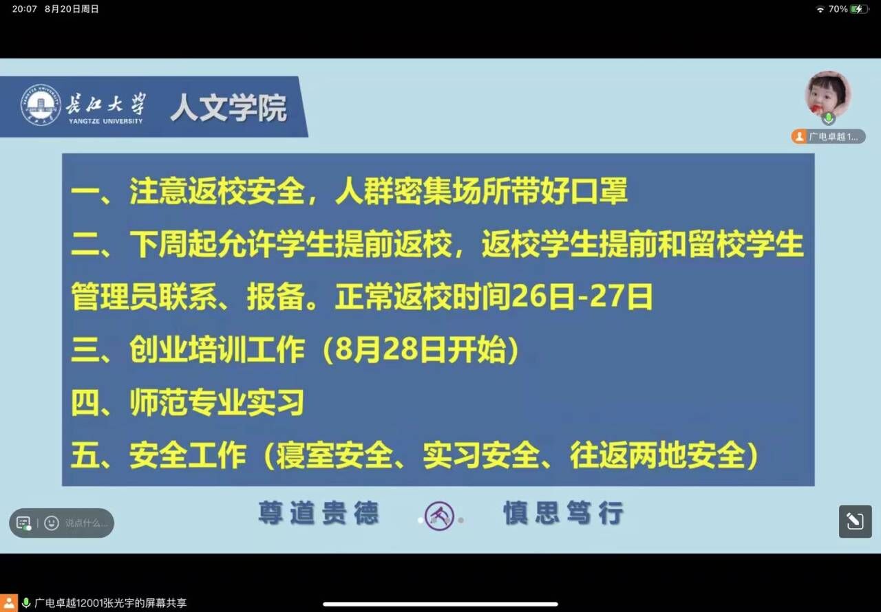 此次开学前系列安全教育主题会议,让老师们,同学们进一步明确了秋季返校的相关政策和流程。学院将以生为本,进一步开展各种形式的教育活动,确保学生新学期安全、平安、顺利返校。