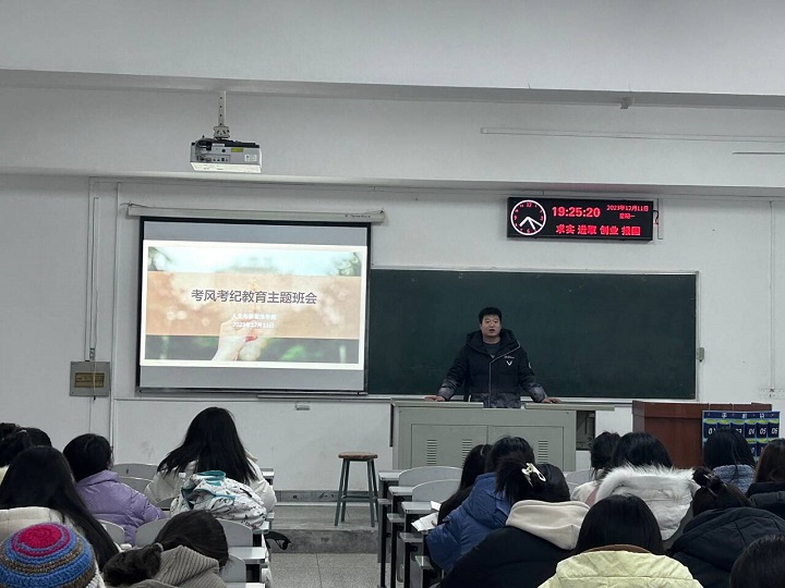 (通讯员 龚玉云)为严肃考风考纪,加强诚信教育,培养学生诚信品德,端正学习态度,营造公平、公正、诚实守信的考试氛围,2023年12月10日至12日我院各班开展考风考纪教育主题班会,班会由各班主任主持。