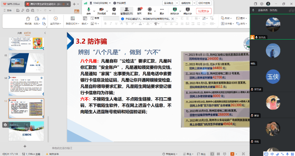 班会上,各班副班长就清明节放假安排进行了强调。重点从人身安全、交通安全、消防安全、食品安全、财产安全、网络安全以及防诈骗等对学生进行安全知识的普及,增强学生的安全意识。同时开展了防欺凌法治专题教育,营造了和谐稳定的学习生活氛围。