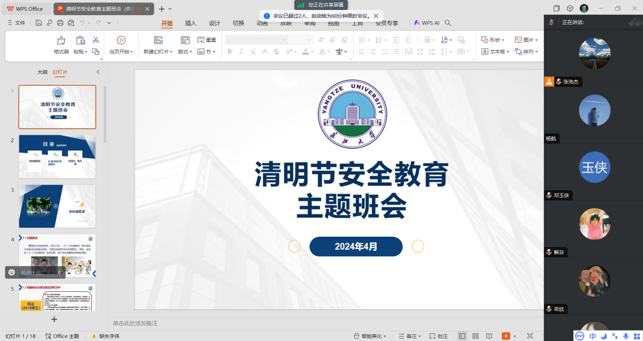 安全无小事,生命重于山。此次主题班会的召开,进一步提高了学生们的安全意识,为大家安全稳定度过清明假期提供了有力的保障。