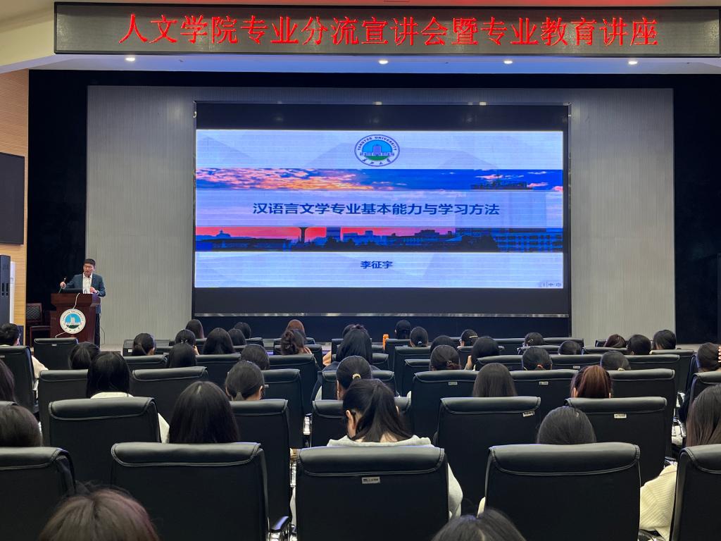 (通讯员 邓哲今)为增强同学们对汉语言文学专业的了解,明晰未来学习方向,4月10日晚19时,yl6776永利集团在农科大楼1058学术报告厅,开展2023级中文系专业分流宣讲会暨专业教育讲座。辅导员耿传令及2023级中文专业本科生参加,学院副院长李征宇主讲。