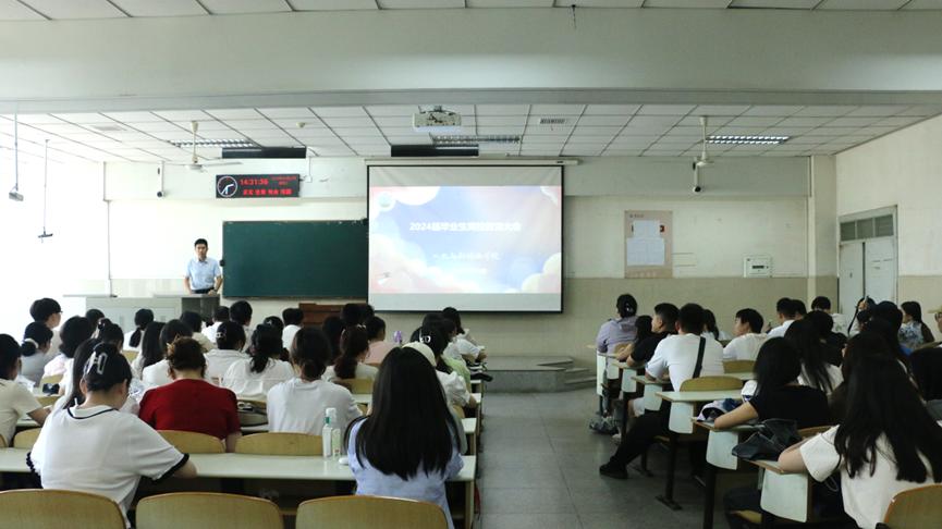 (通讯员 常启慧 严红麟)6月12日下午,学院在12教102室举行2024届毕业生离校教育大会,学院分党委副书记竺正海、学生事务办公室主任龚玉云、学院团委书记陈娟及2024届全体毕业生参会。会议由辅导员归航主持。