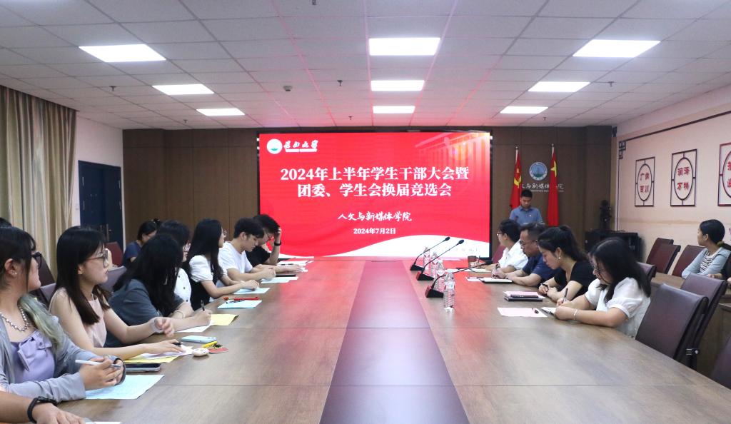 (通讯员 张钰洁/文 严红麟/摄)为进一步强化班级十项建设,提升院学生会组织活力,打造院学生会与班级联动机制,强化学生干部的责任意识和担当意识。7月2日晚,2024年上半年学生干部大会暨团委、学生会主席团换届竞选会在东校区文科楼705会议室举行。院党委副书记竺正海老师,学生事务办公室龚玉云、陈娟、田华蓉三位老师,院学生会成员及班级干部代表共50余人参加。会议由辅导员彭超主持。