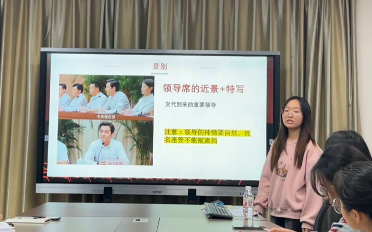 (通讯员 刘素心)10月21日晚7:00,我院于文科楼701室举办会议拍摄技巧培训。学院辅导员田华蓉老师、新闻社社长成筝、学生会主席团成员宋屹晗及院宣传部全体成员参与此次活动,本次活动由宋屹晗主持。