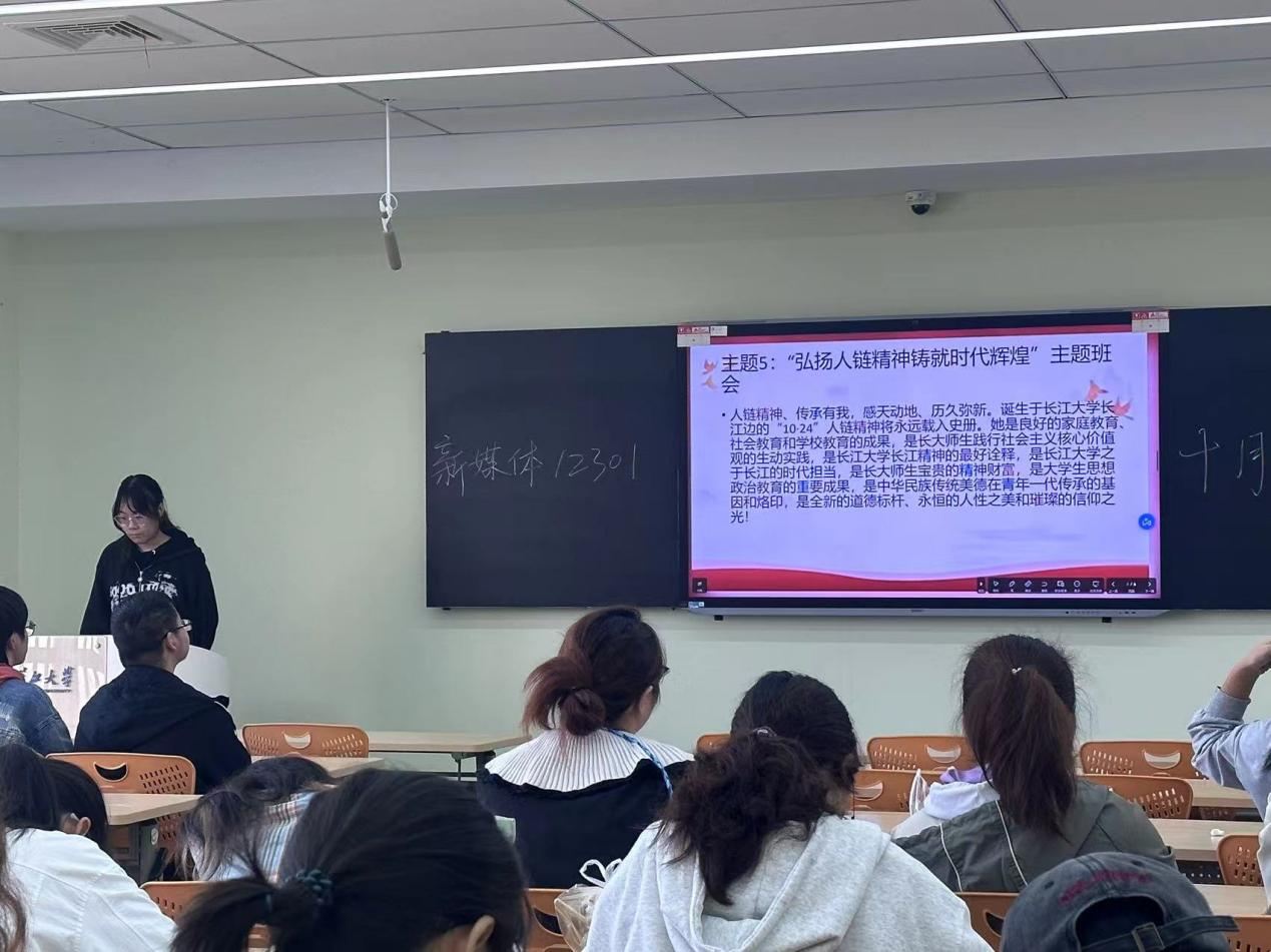 (通讯员 张显浩)七十五载传承奋进,人链精神永驻心中。为庆祝新中国成立75周年,纪念“10·24”全国见义勇为舍己救人大学生英雄集体诞生十五周年。我院于10月21日—10月27日组织各班开展“弘扬人链精神 铸就时代辉煌”主题班团会,教育引导大学生践行社会主义核心价值观,增强青年学生历史使命感和社会责任感。