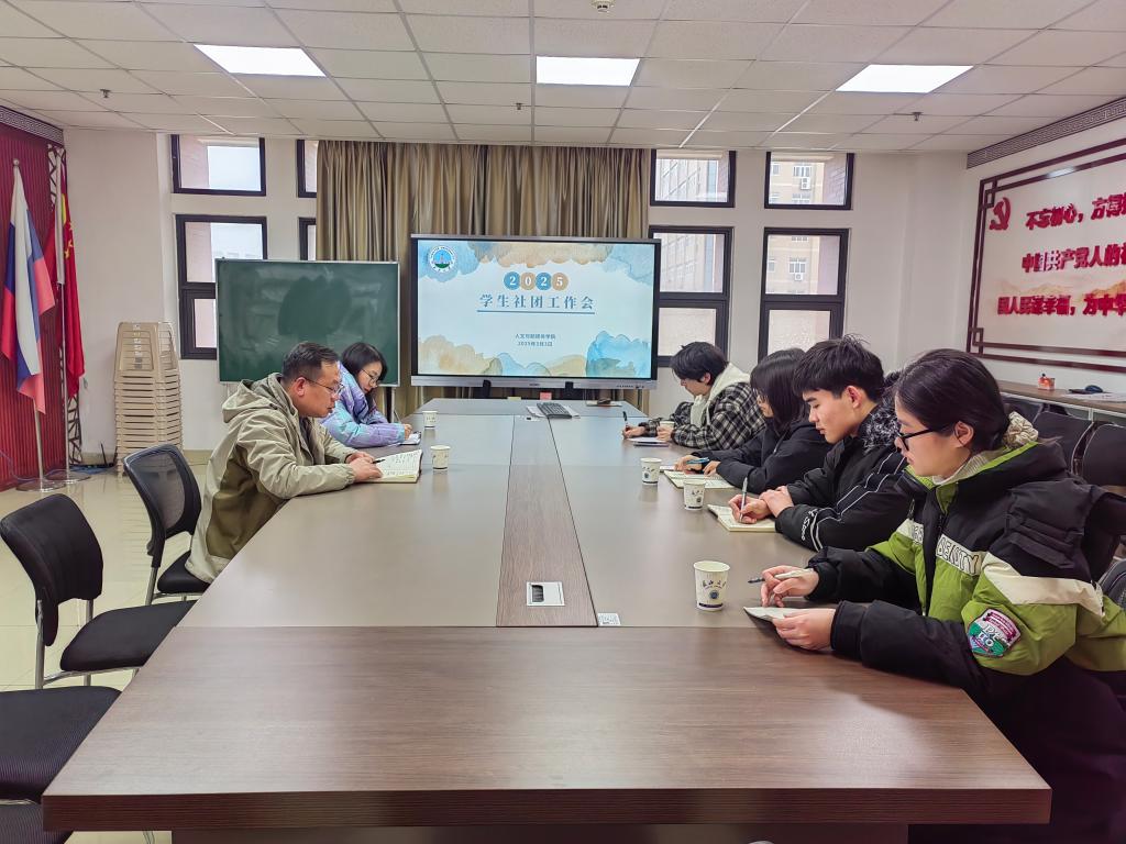 2025年3月3日,学院于文科楼701召开社团工作会议,长江新闻社、长江文学社、长江话剧社、长江非物质文化遗产传承与发展学社的社长们齐聚于此,共同探讨社团发展与校园文化建设,学院党委副书记竺正海出席会议,对社团工作给予了高度关注与指导。